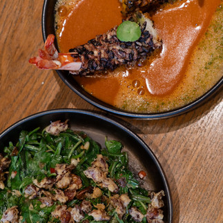 ฉู่ฉี่กุ้งลายเสือ - กุ้งลายเสือจากจังหวัดภูเก็ต โดยนำข้าวที่มีอยู่แล้วทั้ง 6 ชนิดมาทำเป็นข้าวพองเคลือบรอบกุ้งให้ความกรอบหอมทานกับแกงฉู่ฉี่ที่เข้มข้น