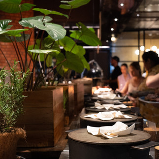 ไฮท์ไลท์ของโรงแรมที่โดดเด่นและใครๆมาก็ต้องถ่ายรูปคือ ศาลาขาวที่เป็นเหมือนปราสาทขนาดใหญ่ที่ตั้งตระหง่านอยู่หน้าภูเขา โดยศาลาหลัก (Sawan Pavilion) ได้รับแรงบันดาลใจจาก “รูปสถาปัตยกรรมสวรรค์” ในภาพจิตรกรรมฝาผนังของวัดไทย ในศาลาเป็นห้องอาหาร hom ห้องอาหาร fine-dining ซึ่งนำเสนอเมนู tasting menu แบบ 7 หรือ 10 คอร์ส โดยหยิบเอา ศาสตร์การหมัก (fermentation) ซึ่งเป็นภูมิปัญญาการถนอมอาหารโบราณ มาตีความใหม่อย่างร่วมสมัย ผสมผสานกับวัตถุดิบท้องถิ่นจากภูเก็ตและพื้นที่ใกล้เคียงโดยห้องอาหารได้รับการแนะนำโดย MICHELIN Guide Thailand ในปี 2023 และ 2025